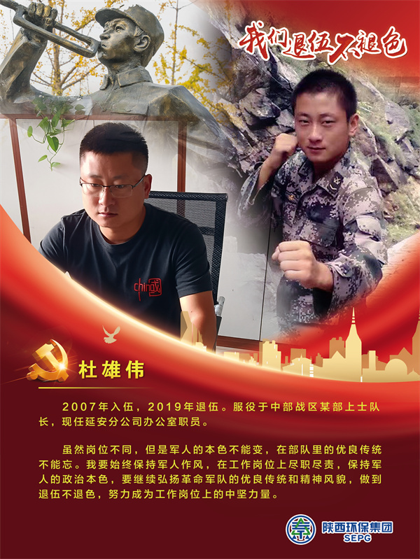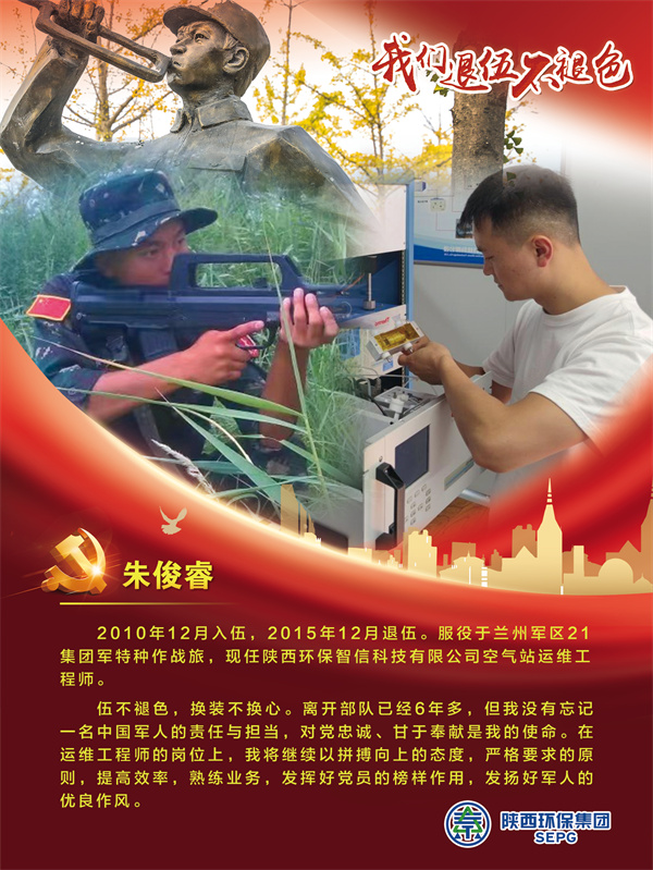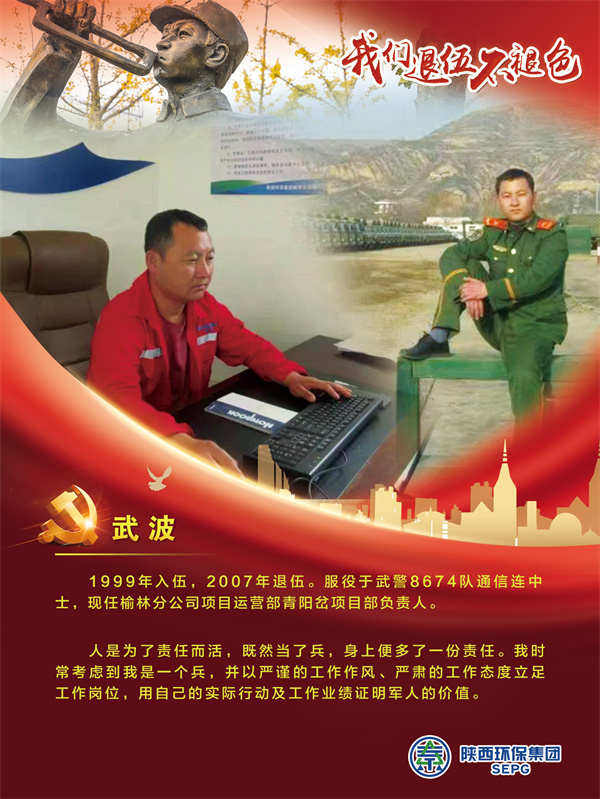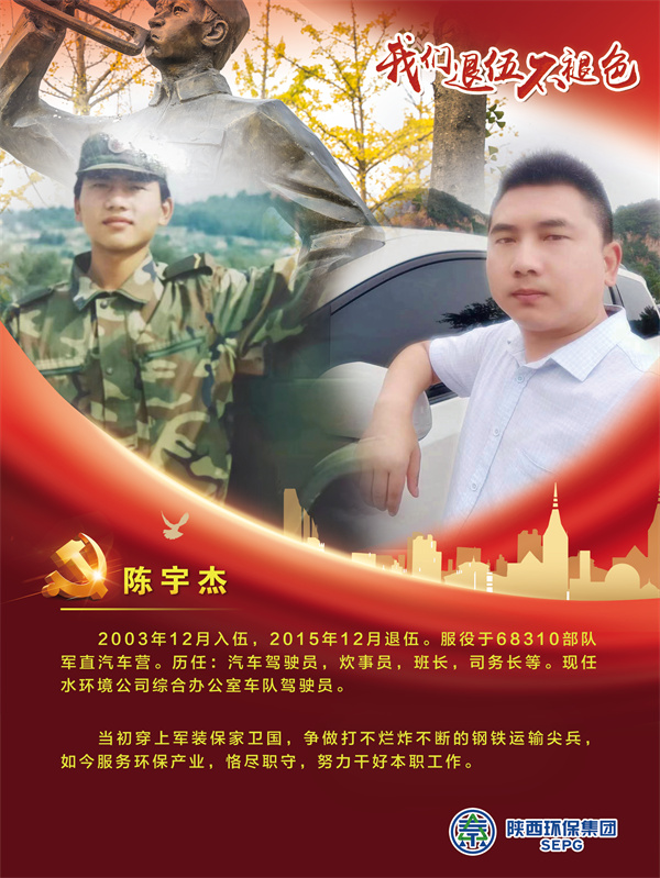 他們把青春的時光獻給軍營,揮灑青春、保家衛國,如今他們帶著軍人的一腔熱血和優良作風在陜西環保集團守護全省藍天、碧水、凈土的“保衛戰”里續寫輝煌,制服的顏色變了,但為民的初心永不褪色。戎裝在身,他們保家衛國;退役歸來,他們堅守崗位,用實際行動證明著退役不退志,退伍不退色。在第95個建軍節之際,陜西環保集團融媒體平臺用一張張海報向“老兵”致敬。