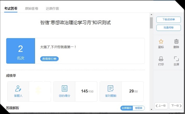 每個(gè)模塊學(xué)習(xí)結(jié)束后,采用在線考試的方式,對(duì)黨員進(jìn)行知識(shí)水平測試,對(duì)理論學(xué)習(xí)月學(xué)習(xí)內(nèi)容進(jìn)行有效檢查,同時(shí)也作為黨員日常政治理論水平的一塊試金石,試出不足、試出能力、試出成效,進(jìn)一步推動(dòng)支部理論學(xué)習(xí)工作再上新臺(tái)階。