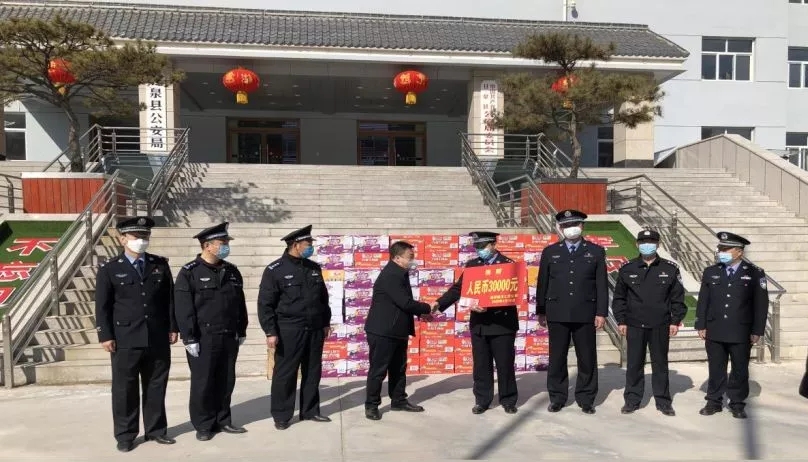 近日,綠色能源公司下屬延安振洋工貿公司將2萬元現金和價值1萬元的愛心物資送到了堅守在一線的甘泉縣公安干警手中,對公安干警們取消休假、一直堅守在崗位執勤表示感謝。在場執勤的甘泉縣副縣長郝杰代表所有一線執勤人員,對綠色能源公司延安振洋工貿公司的善舉表示感謝,同時表示將繼續發揚甘泉公安隊伍不怕苦累的優良作風,以更加飽滿的工作熱情和超常的工作狀態,努力做好防疫工作,堅決打贏疫情防控阻擊戰。(高振琦)